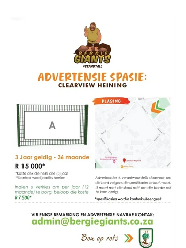Want to support Bergie Giants We’re offering advertising space on the school’s Clearview fencing to help raise funds for projects that benefit our students and school community!